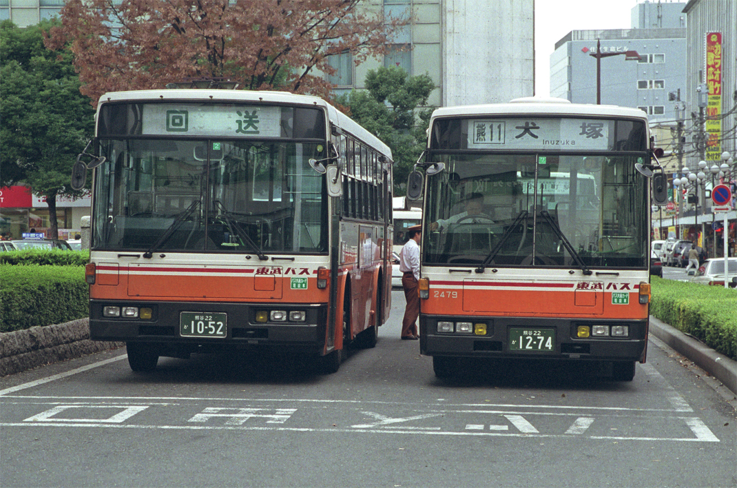 右:熊谷駅前で小休止中の社2087号車と2456号車。
