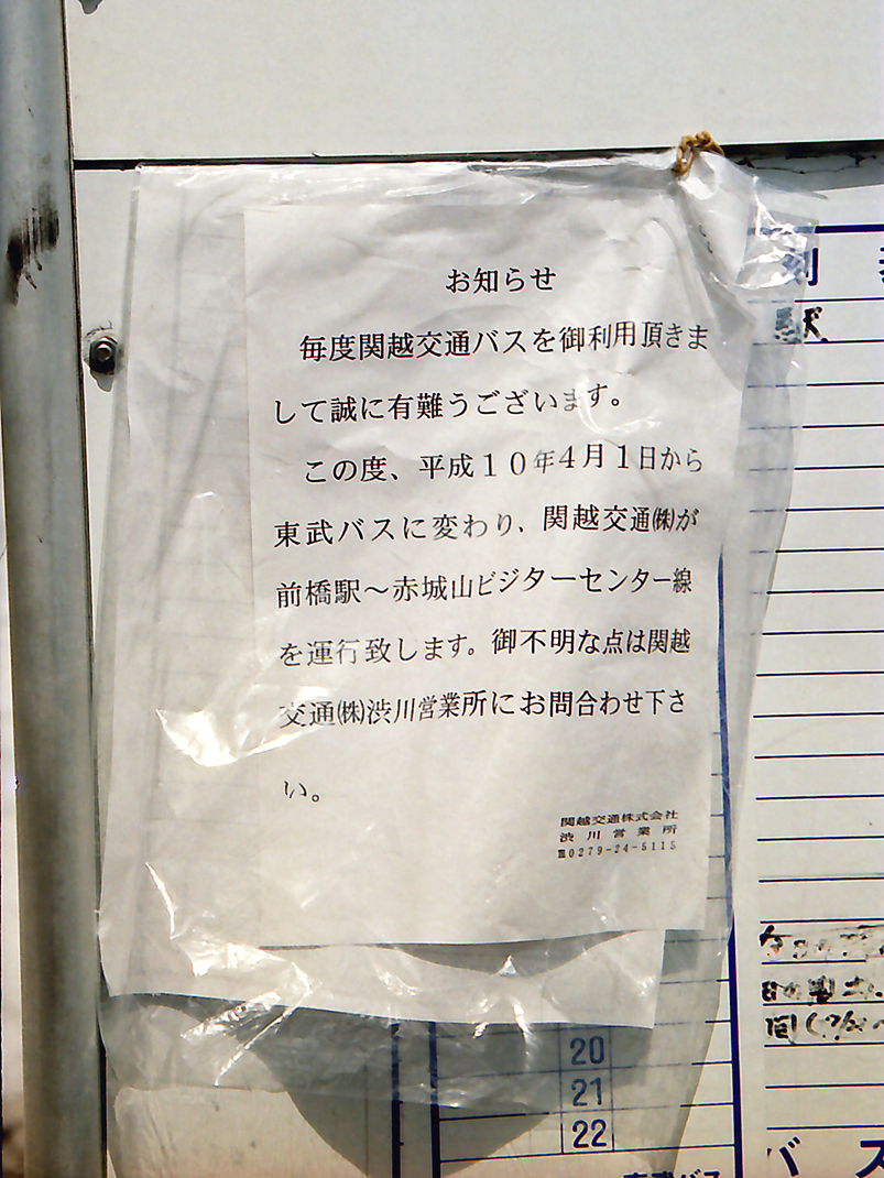 東武バスがこの路線から撤退したのは平成10年の3月一杯で、東武バス